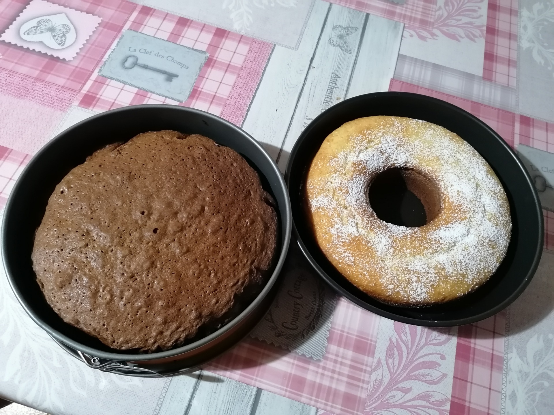 L'impasto è pronto. Imburrate uno stampo da ciambella del diametro di 27 cm (misurato in superficie), versate il composto e distribuitelo con una spatola in modo uniforme oppure ruotate lo stampo tra le mani. Cuocete il ciambellone in forno statico preriscaldato a 180° per 40 minuti posizionando lo stampo sul ripiano più basso del forno, quindi non a contatto con la base. A fine cottura fate sempre la prova dello stecchino perchè potrebbero volerci più o meno minuti a seconda del vostro forno. Quindi sfornate il dolce, attendete che sia tiepido prima di capovolgere lo stampo su un piatto